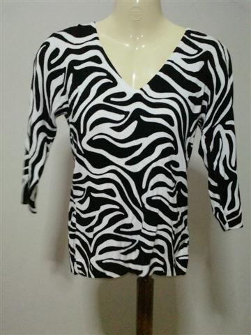 เสื้อลายเสือสีดำคอวี แขนสามส่วน ผ้าดีมากใส่สบาย