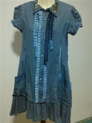 เดรสสีน้ำเงินกระดุมหน้า ปักเลื่อมที่ปก