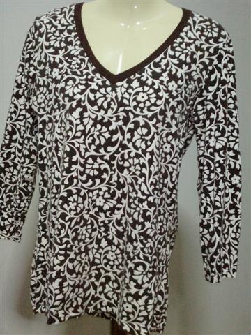 เสื้อผ้ายืดคอวีสีน้ำตาลเข้ารูป แขนสี่ส่วน