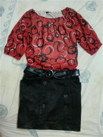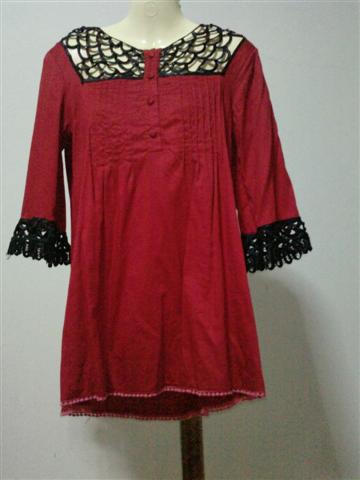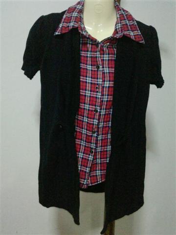 เสื้อสีแดง คอและแขนเป็นตาข่ายสีดำ เก๋ดี