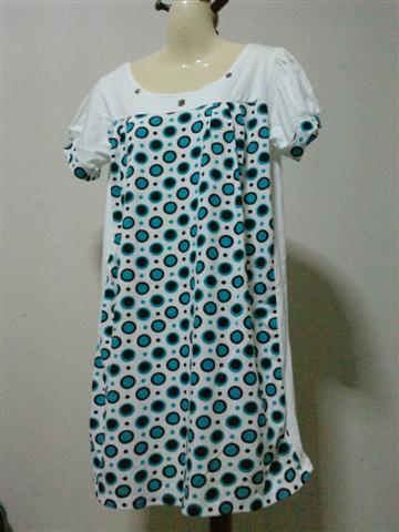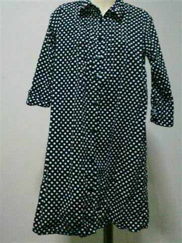 เสื้อตัวยาว สีขาว ด้านหน้าลายจุดกลมสีฟ้า