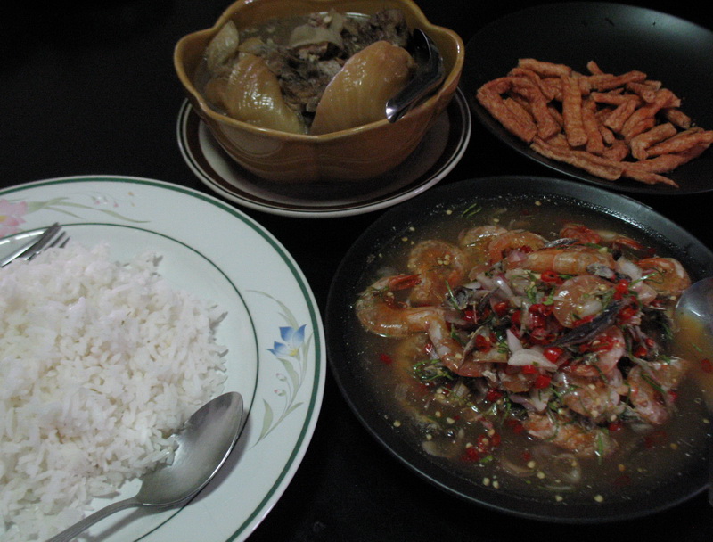 ต้มยำขาหมู น่าทานจนลืมอ้วนเลยค่ะ พี่แหวว ยิ่งรสแซปๆ ด้วยแล้ว ทานกับผัดผักรวมอีก อาหารเอามาแบ่งปันกันเยอะจริงๆ