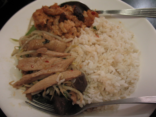 แอบไปตักกระเพราหมูของสามีใส่จานด้วยค่ะ ที่เห็นออกสีเข้มหนึ่งใส่ซี่อิ้วดำไปนิดหนึ่ง เลยกรายเป็นกระเพราหมูดำ ฮาๆๆๆๆ