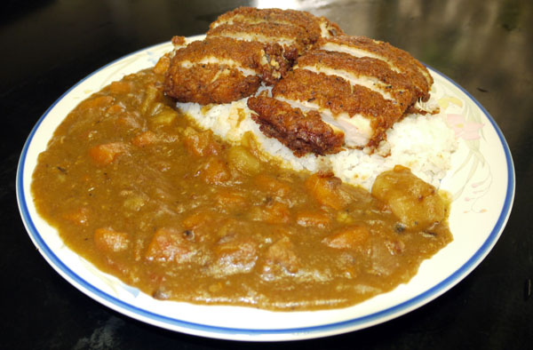 เมนูแรก เอาแกงกะหรี่ญี่ปุ่น + ไก่ทอด จานใหญ่ ฝีมือ รุ่นพี่คนนึง ชื่อพี่เอริท์ มาฝากครับ เอิ๊กๆ