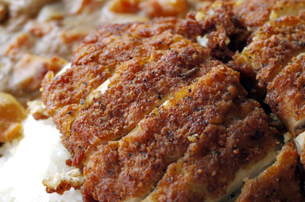 โป๊ะหน้าด้วย ไก่ทอดชิ้นโตๆ ข้างนอกกรอบๆ ข้างในเนื้อนุ่นๆ