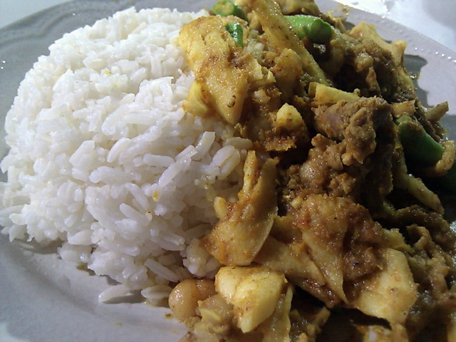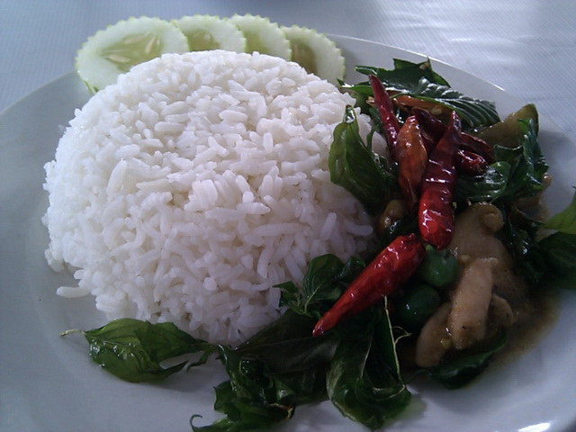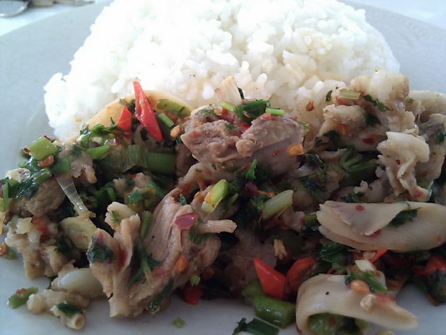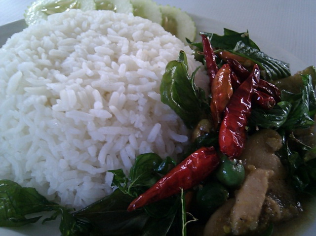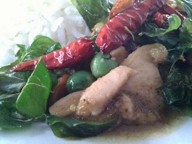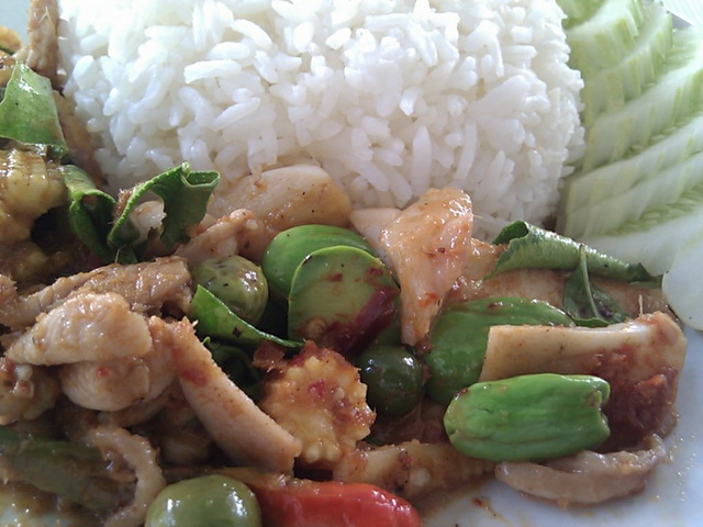 ข้าวราดไก่ผัดเผ็ดสะตอ