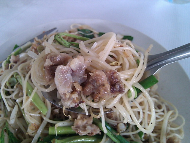 เมนูนี้ ชื่อว่า หมี่ซั่วผัดหมูเปื่อย