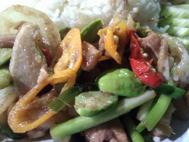ข้าวราดสะตอผัดกะปิกับไก่ เมนูนี้ ชอบมากครับ ชอบกินตั้งแต่เด็กๆ เลยล่ะครับ