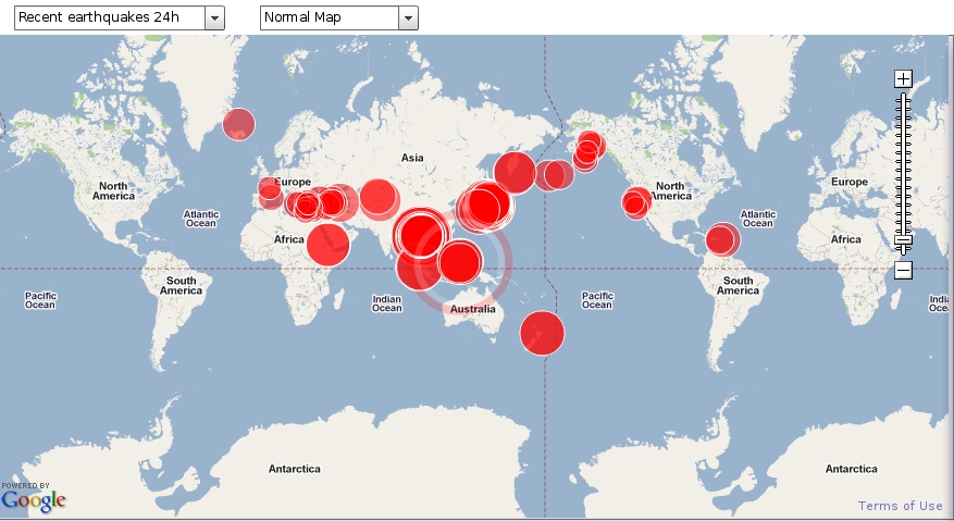เพิ่งเข้าไปดูเครื่องมือ http://realtimetools.de/ ที่คุณ Pemhansa แนะนำไว้ เห็นด้วยค่ะว่ามีประโยชน์มากๆ ไม่รู้เลยว่ามีแผ่นดินไหวเยอะขนาดนี้