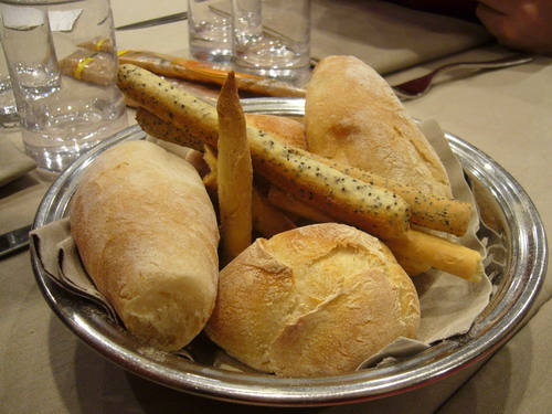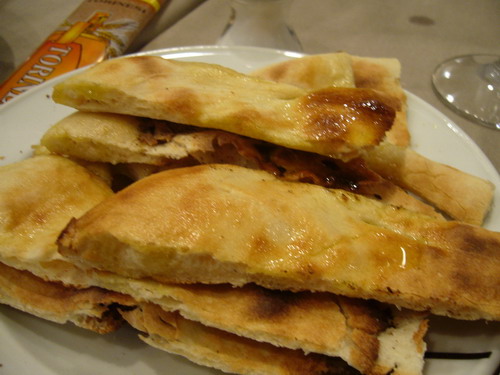 จานนี้จะเป็น แป้ง Pizza แห้งๆ ราดด้วยน้ำมันมะกอก เป็น Signature ของร้านจะมาเสิร์ฟก่อนอาหารจะมา