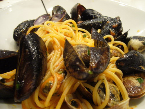 หลังจากที่เที่ยว Venice จนหนำใจ เราได้นอนดูข่าวเสื้อแดงใน CNN (T T) รวมทั้งข่าวภูเขาไฟระเบิด แล้วเห็นภาพนักท่องเที่ยวเต็มสนามบิน เราก็คิดในใจว่า เดี๋ยวก็คงเปิดมั้ง ปรากฏเจอ ไกด์คนไทยโดยบังเอิญ เค้าหัวเราะแล้วบอกว่าคงได้อยู่เที่ยวต่อนะคะ เพราะระเบิดอีกลูกแล้ว คราวนี้เราเงียบกันทั้งกลุ่มเครียดเลย แต่ก็ยังมองโลกในแง่ดีน้า หลังจาก Venice เราก็นั่งรถไปกลับไปมิลาน ไปเจอเพื่อนแฟนที่ดูงานแฟร์ที่ มิลาน แล้วเค้าก็พาไปทานอาหารที่ร้าน Paper moon อยู่แถบๆ ร้าน Chanel LV ค่ะ ต้องจองล่วงหน้า ไม่จองไม่ได้กิน ร้านเปิด ทุ่มครึ่ง ปิดไม่แน่ใจ น่าจะหลังเที่ยงคืน เค้าเล่ากันว่าร้านนี้ขายได้วันละ ประมาณ 1 ล้านบาท ^^" ไม่รู้จริงรึเปล่า น่าอิจฉา เป็นที่สุด แต่ก็น่าจะจริงเพราะคนเยอะมากๆๆๆๆๆๆ ญี่ปุ่นก็ปาเข้าไปเกินครึ่งร้านแล้วค่ะ ร้านนี้เจ้าของเป็นแม่ กับลูก เห็นอยู่ตรง Cashire ช่วยลูกน้องทำงาน ร้านนี้ดารา Hollywood จะมากินที่ร้านนี้ แล้วเค้าจะเอารูปดาราที่เคยมากินติดไว้ที่ร้าน ที่จำได้มี Nicole Kidman, George Clooney, Robert De niro เยอะมากๆจำไม่ได้ คนที่เล่นเรื่อง Toosie ก็เคยมา รูปละลานตาไปหมด