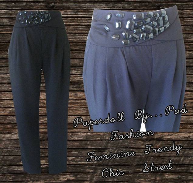 กางเกงขายาวทรงฮาเรม ปักเพชรเทียมสีดำ งาน Hongkong