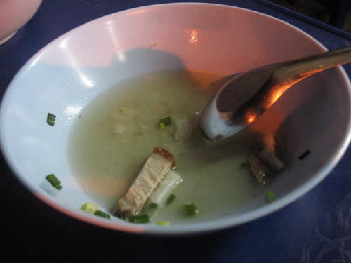 แต่ ตอนที่อาหารมาเสริฟแล้ว เราก็กินกันเลย ไม่ทันได้ถ่ายรูปไว้ก่อน จะเห็นว่า ถ้วยนึงใกล้จะหมดแล้ว