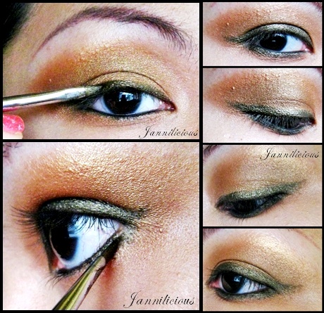 นำสีทองจาก NYX Glitter Cream Palette แต้มทับ eyeshadow ลงไปเลย ตามภาพค่ะ