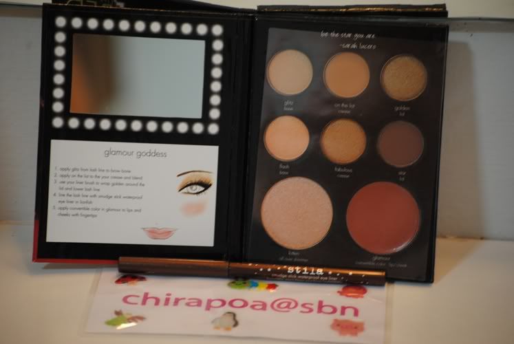 Get camera-ready looks with Stila's new collection with E! Live from the Red Carpet. The Glamour Goddess Palette includes six eye shadows, a Convertible Color, Kitten All Over Shimmer Powder and Lip Glaze. Polished skin combined with bronzy, shimmery eye shadows create the perfect glam look.
