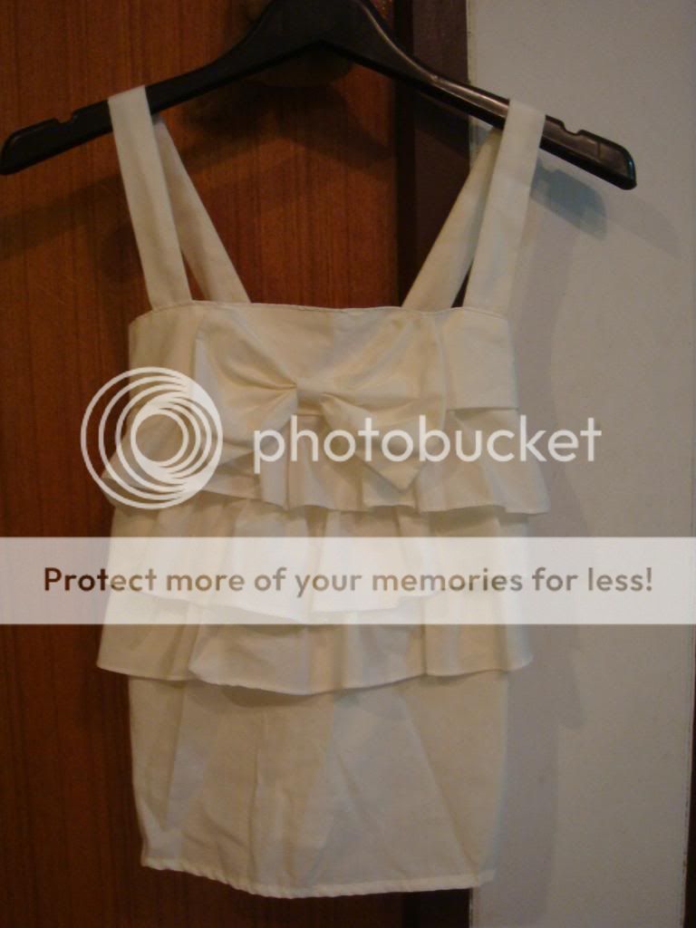 17. เสื้อสีขาว มีระบายชั้นๆและโบว์ที่อกคะ ใส่ทับในmixกับยีนส์สั้น ก็เลิศแล้วค่า