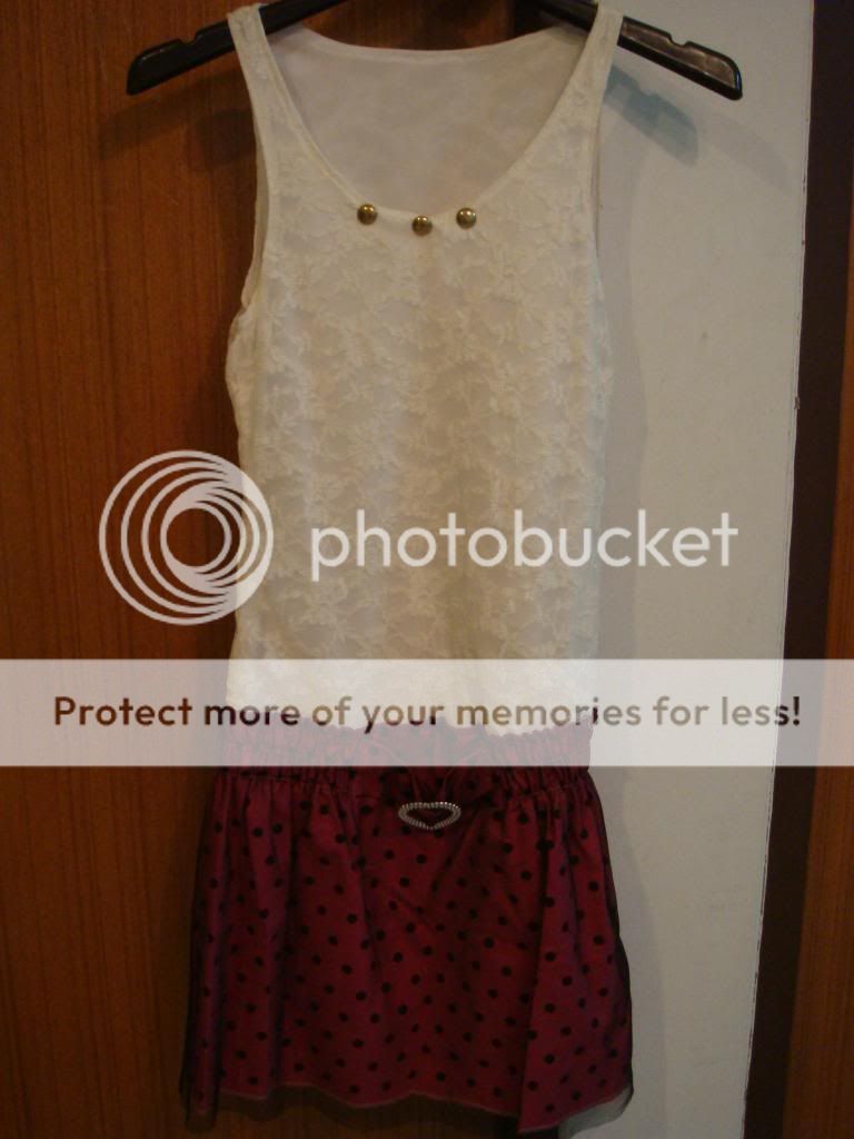 5. เดรสลูกไม้ขาวช่วงบนตัดกับกระโปรงลายจุดสีหวานๆค่า