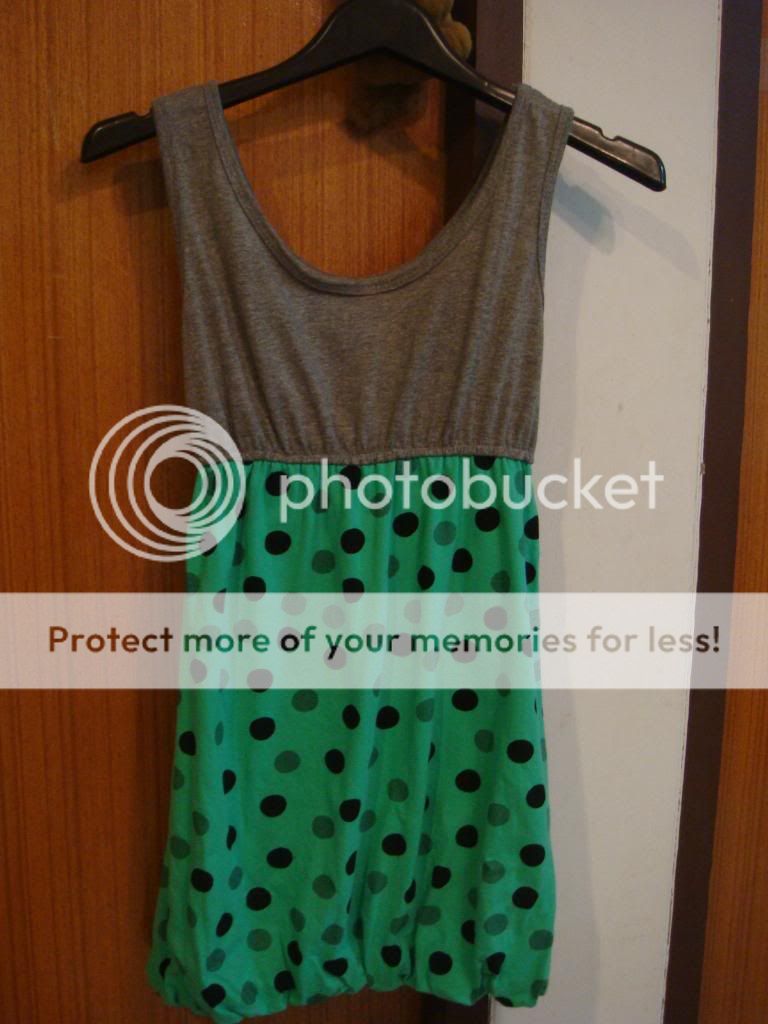 14. มินิเดรสสีเขียวลายจุด หรือจะใส่กับขาสั้น เลคกิ้งก็ได้ค่า
