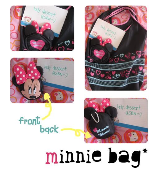 กระเป๋า มินนี่ น่ารักมากกก ใบนี้สามารถพับแล้วห้อยเป็นพ่วงกุญแจได้ด้วยน้าาา
