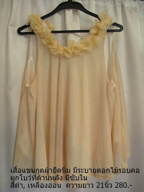 อก 34 นิ้ว ยาว 27 นิ้ว แขนยาว 17 นิ้ว ชายกว้าง 46 นิ้ว