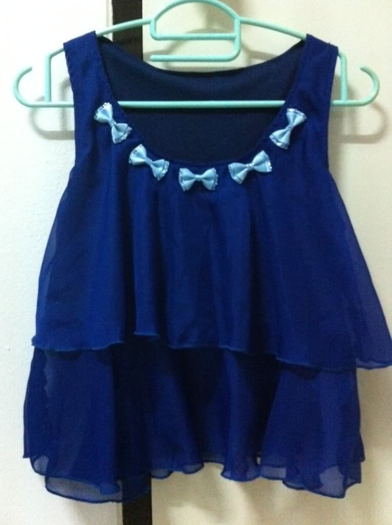 แต่งโบว์ช่วงคอที่โบว์มีคริสตัลสีฟ้าประดับอยู่ Freesize ค่ะน่ารักสุดๆ