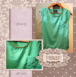 เสื้อสีเขียวอ่อน ดีเทลที่คอกับแขนเก๋มากคะ sale 250