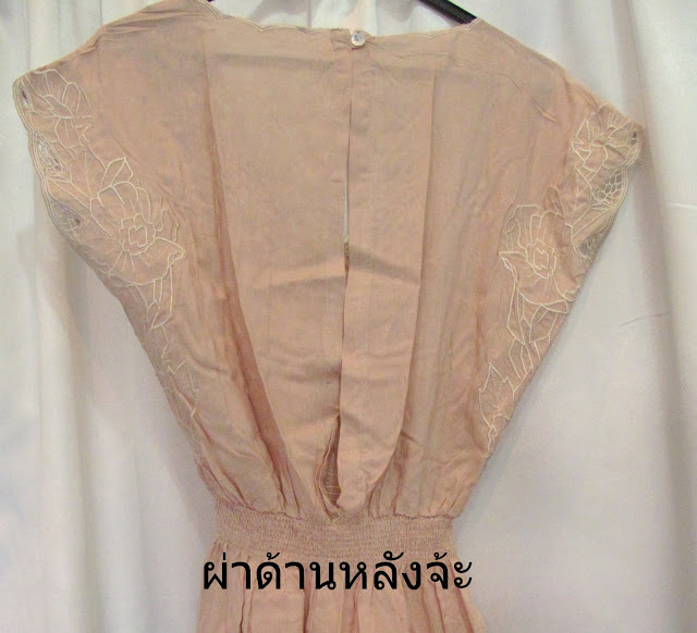 เดรสปักลายดอกไม้ เอวสม็อค ผ่าหลัง ผ้าฝ้าย