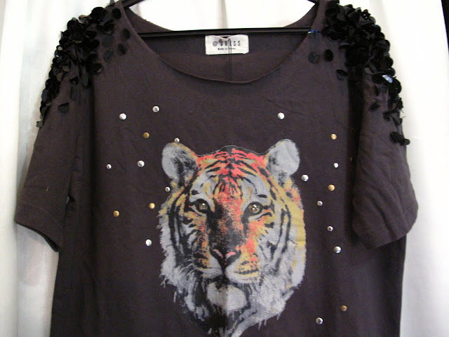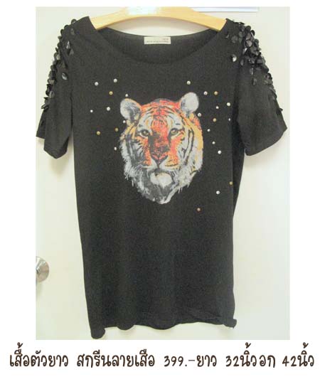 เดรสผ้ายืดสกรีนลายเสือ ติดหมุด ปักเลื่อมที่แขน