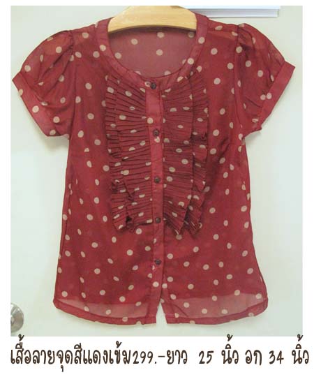 อก 36 นิ้ว ยาว 28 นิ้ว แขนยาว 23 นิ้ว ชายกว้าง 38 นิ้ว