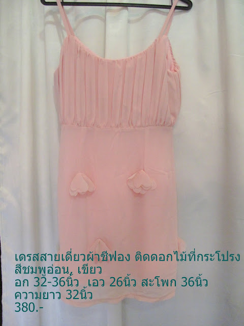 ของใหม่ เดรสสายเดี่ยวผ้าชีฟอง ติดดอกไม้ที่กระโปรง