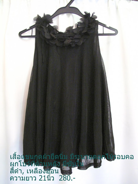 ของใหม่ เสื้อแขนกุดผ้ายืดนิ่ม มีระบายดอกไม้รอบคอ ผูกโบว์ที่ด้านหลัง มีซับใน