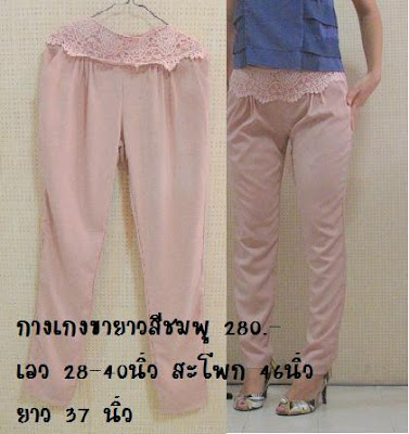 กางเกงทำงานขาเดฟ ผ้าดีไม่ยับง่าย แต่งลูกไม้ที่เอว