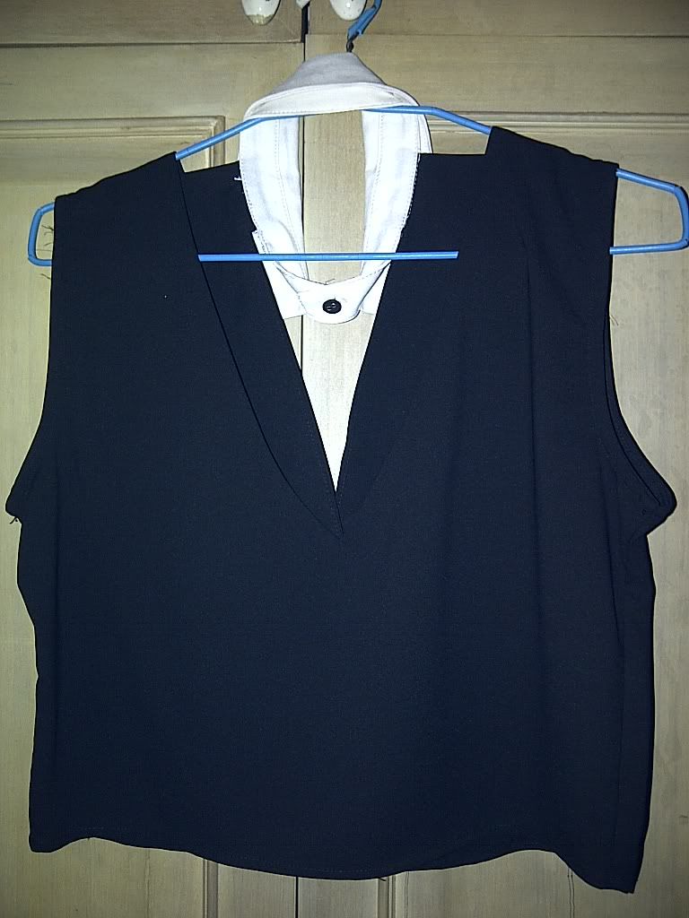 1.เสื้อดำปกขาว (เสื้อกับปกติดกันนะคะ) ข้างหลังเว้าเป็นตัว V 250 บาทค่ะ ตัวนี้ซื้อมาซักแล้วแต่ยังไม่เคยใส่ค่ะ