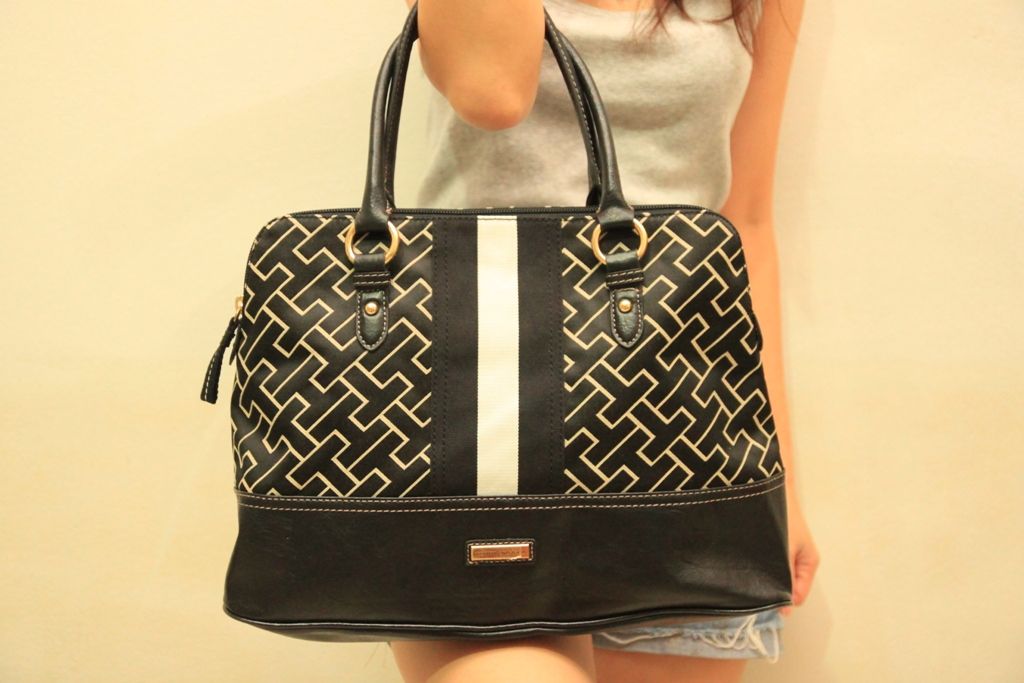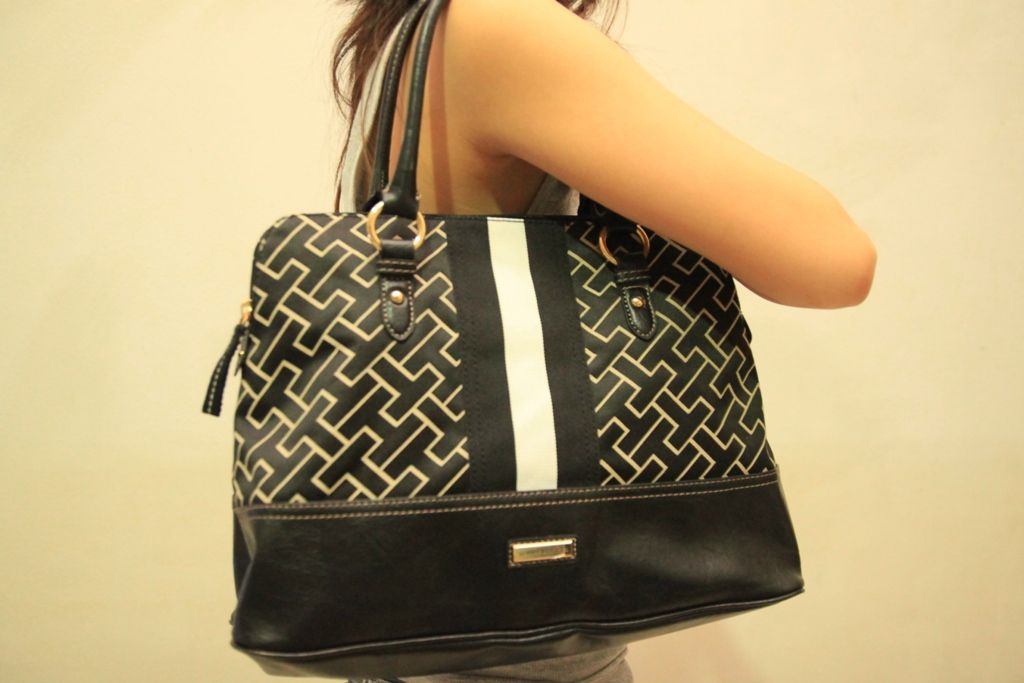 กระเป๋า TOMMY HIFIER ด้านล่างเป็นหนังนะคะ รุ่น SATCHEL สีดำ สะพ่ยข้างได้หิ้วได้ พร้อมส่งฟรีที่ 2100 บาทคะ