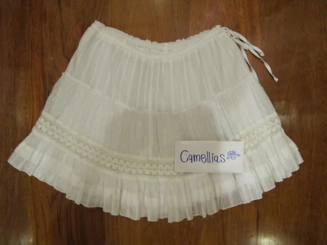 24. USED เหมือนใหม่: กระโปรงลูกไม้สีขาว แบรนด์เมกา free size ขาย 350 บาท