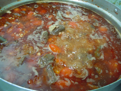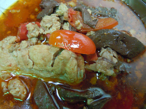 เห็นขนมจีนผัดของคุณป้อมแล้ว พี่เกิดแรงบันดาลใจที่จะทำขนมจีนน้ำเงี้ยว เผื่อขนมจีนเหลือจะได้เอาไปผัดเหมือนคุณป้อมค่ะ สำหรับเครื่องปรุงน้ำเงี้ยวก็จะมีน้ำพริกแกงเผ็ดปรุงสำเร็จแล้วก็ได้ค่ะสะดวกดี เต้าเจี้ยว หมูสับ(พี่จะสั่งให้เอาหมูสามชั้นบดกับหมูแดงค่ะ) กระดูกหมูจะเป็นกระดูกอ่อน หรือกระดูกซุปก็ได้นะคะ มะเขือเทศ ถ้ามีดอกงิ้วที่ตากแห้งแล้วจะนำมาแช่น้ำให้นุ่มด้วยก็จะดีนะคะ(ตอนนี้ที่บ้านหมดแล้วต้องรออีกสักพักจะได้ไปเก็บมาตากแดดกับไว้ค่ะ) เลือดหมูต้ม เครื่องปรุงรส นำพริกแกงมาผัดกับหมูสับ ผัดให้หอม ใส่เต้าเจี้ยว กระดูกหมู พอสุกเต็มน้ำพอสมควร เคี้ยวให้กระดูกหมูเริ่มเปื่อย เติมเลือดหมูต้มหั่น มะเขือเทศหั่น ชิมรสชาดตามชอบใจ ตั้งไฟอ่อนทิ้งไว้ เตรียมเครื่องเคียง ต้นหอมผักชีหั่น มะนาว พริกทอด แคบหมู ผัดสด อาทิ ยอดผักกระถิน ถั่วงอก กระปลีหั่นฝอย