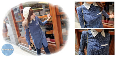 ปกเสื้อตกแต่งด้วยลูกไม้ฝรั่งเศส สวย หวาน น่ารักมากๆค่ะ