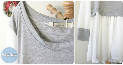 เสื้อยืดผ้า cotton เนื้อนุ่มสีเทา ตกแต่งแขนและชายเสื้อด้วยผ้าชีฟองเนื้อดีสีขาว