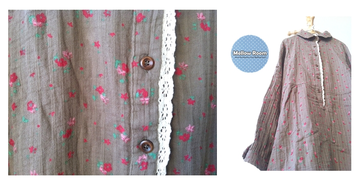 เสื้อตัวยาวผ้าลินินสีน้ำตาลพิมพ์ลายดอกไม้เล็ก ๆ น่ารัก ๆ