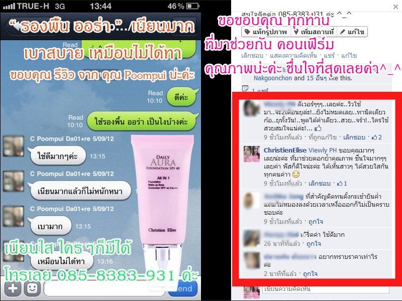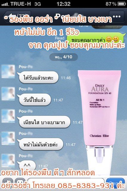 - ออร่า ขาวเนียนใส ทาแล้วเหมือนคนหน้าใสเลยค่ะ