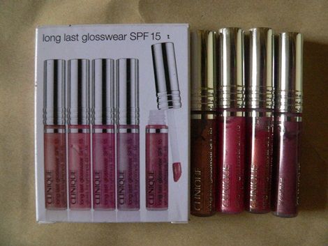 5.Clinique Long Last Glosswear SPF 15 for lips set with 5 colors 5 x 07 oz 23ml each