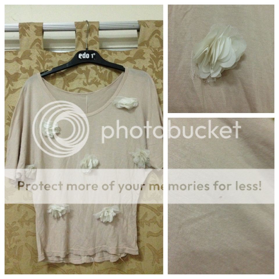 เสื้อยืด ปะดอกไม้ สีชมพูนู้ด
