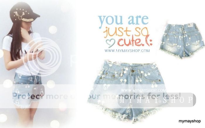 กางเกงยีนส์ฟอกขาสั้นเนื้อดี มาพร้อมลาย Mickey