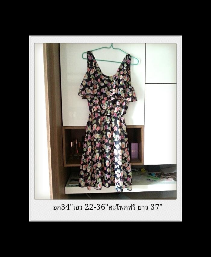 เดรสน่ารักลายดอก อก34"เอว22-36" สะโพกฟรี ยาว 37"