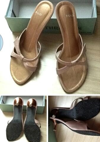 รองเท้าส้นเตี้ย สีชมพูนู๊ด ส้นสูง 1 นิ้ว ใส่สบาย ไซด์ 40 สำหรับเท้ายาว 25 ซม. ซื้อมา 450 บาท
