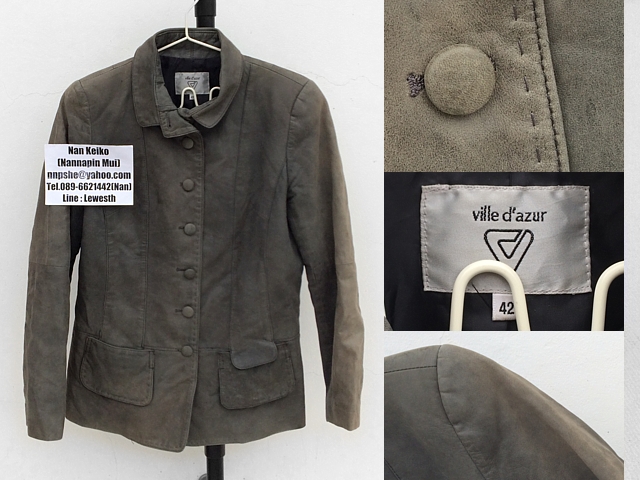 รหัสสินค้า LA1480 : (มือสอง) เสื้อแจ็คเก็ต Ville d'azur Size 42 อก36นิ้ว ยาว25.5นิ้ว แขนยาว23.5นิ้ว ไหล่15นิ้ว หนังแท้ สีเฟดจางๆค่ะ ขาย 350บาทค่ะ (ฟรีค่าจัดส่งแบบลงทะเบียน)