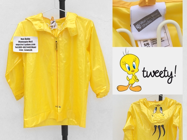 รหัสสินค้า KID0367 : (มือสอง) เสื้อกันฝนเด็ก Tweety Size 5/6 อก36นิ้ว ยาว23นิ้วค่ะ ขาย 170บาทค่ะ (ฟรีค่าจัดส่งแบบลงทะเบียน)