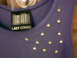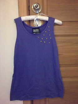 4.เสื้อกล้ามสีม่วงปักหมุดทอง