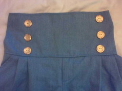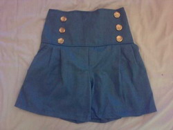 5.กางเกงเอวสูงขาสั้นสียีนส์อ่อนกระดุมทอง