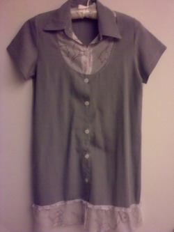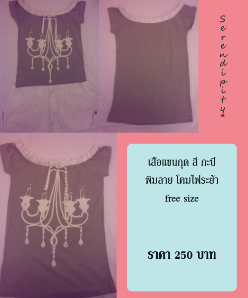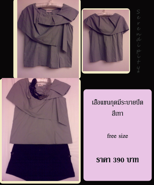 3. เสื้อแขนสั้นสีเทา แขนกัมมะหยี่